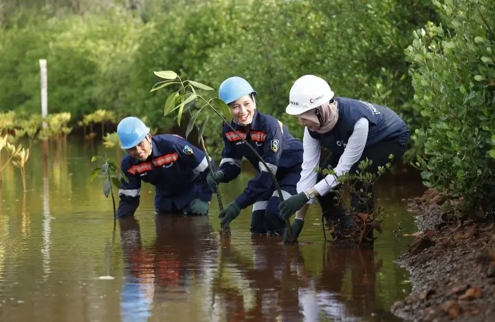 Heri menambahkan bahwa dampak positif dari penanaman mangrove bukan hanya menyerap karbon untuk mendukung NZE, tetapi juga membuat ekosistem pesisir pantai lebih stabil, terhindar dari abrasi, erosi, dan pengikisan tanah, serta melindungi pantai dari dampak badai.